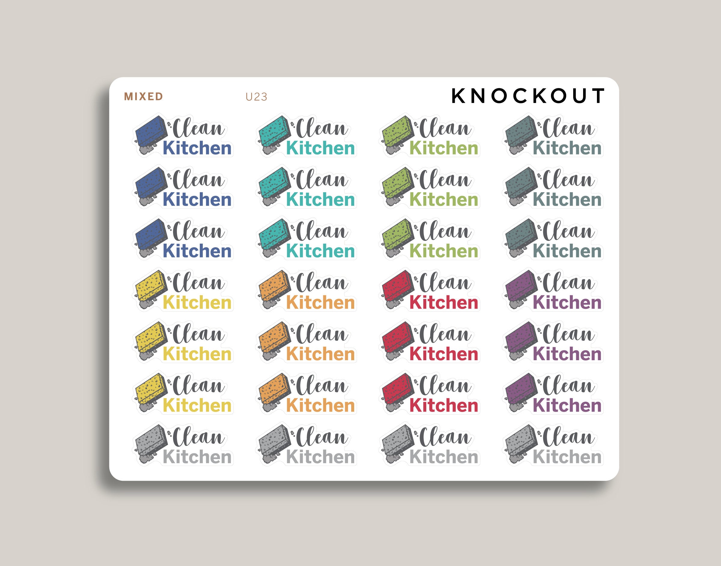 Make the chore of cleaning the kitchen a bit more fun with our Clean Kitchen Icon with Text Stickers! Operation clean house in full effect! These stickers are made to work perfectly anywhere in your Inkwell Press Planner or any planner you use.