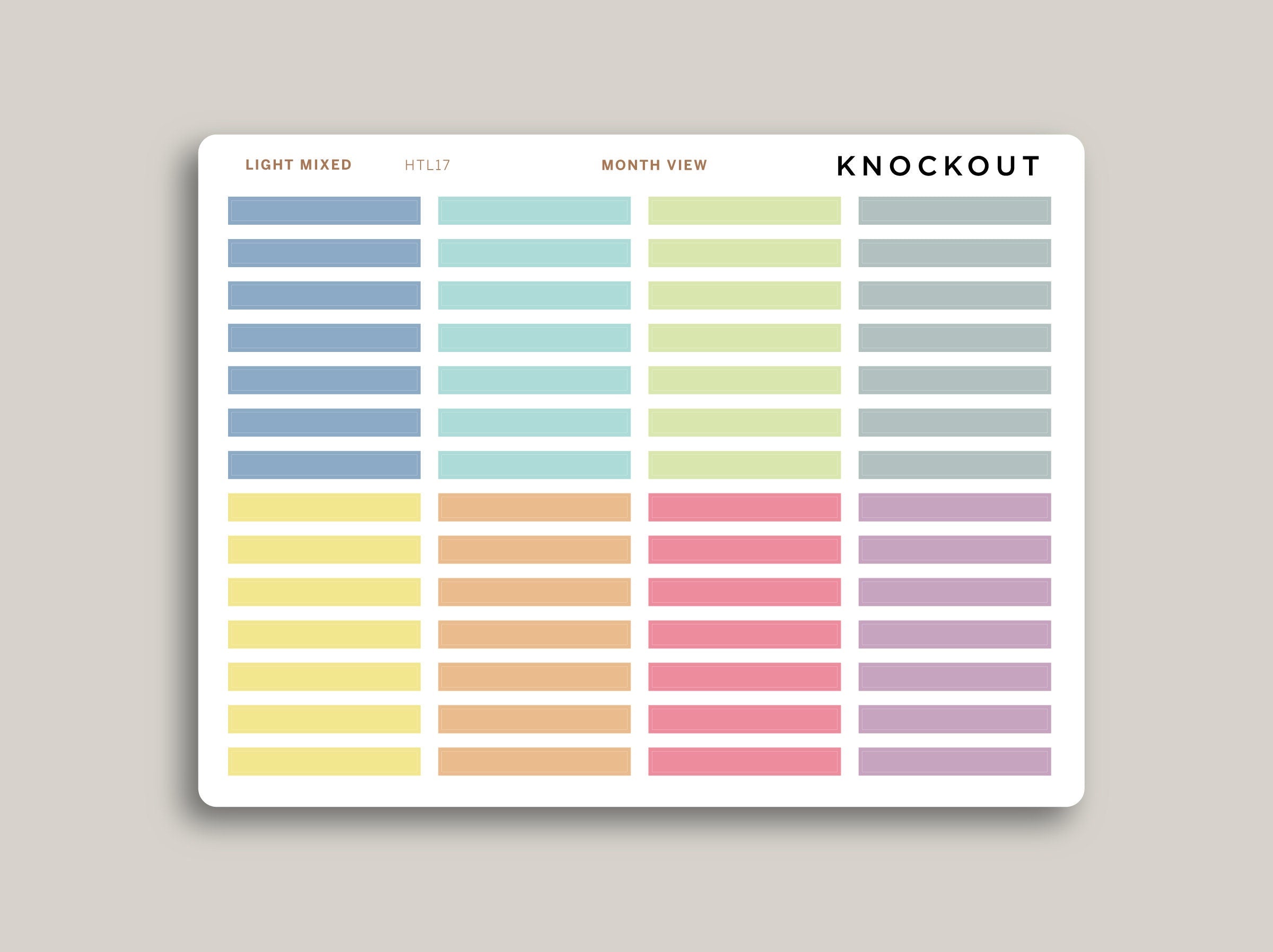 If you are looking to add a pop of color to your Hobonichi Cousin Monthly spreads our 1 Day Divider Washi do the trick. These stickers are sized to cover 1 day of the Hobonichi month view spread and are 1 line tall.