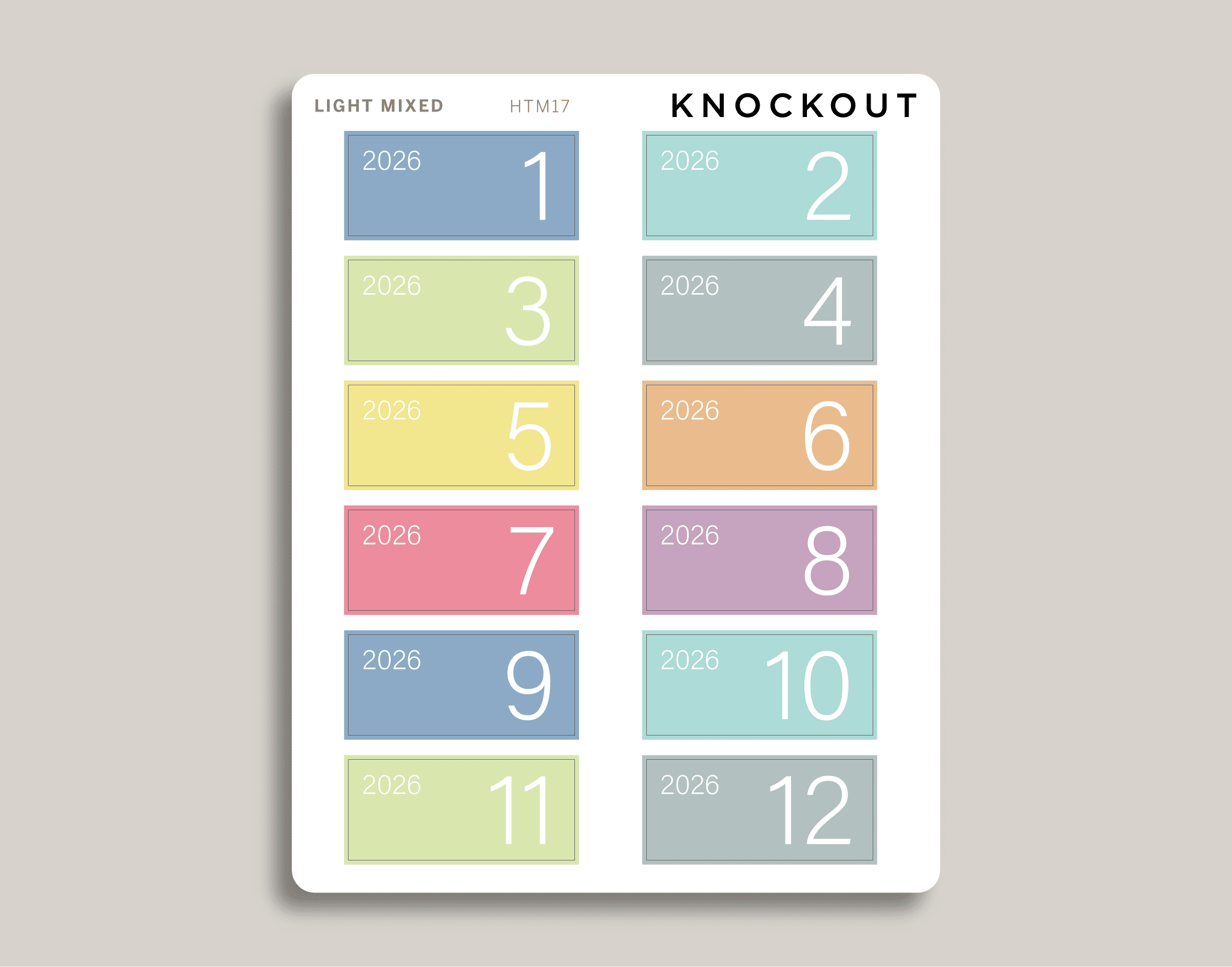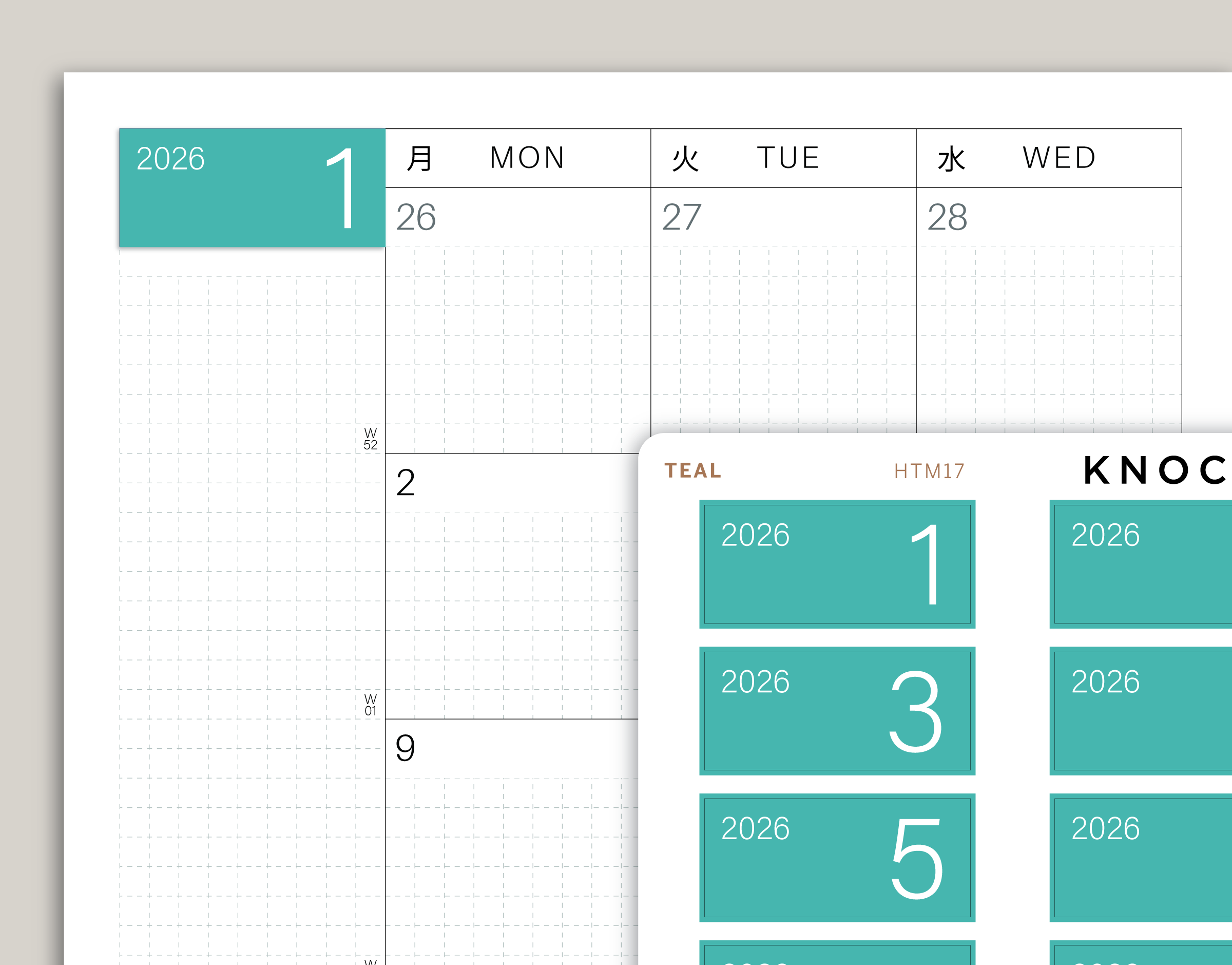 If you are looking to add a pop of color to your Hobonichi Cousin Monthly spreads, our Month Covers do the trick. These stickers are sized to cover the numerical date at the top left of the page.