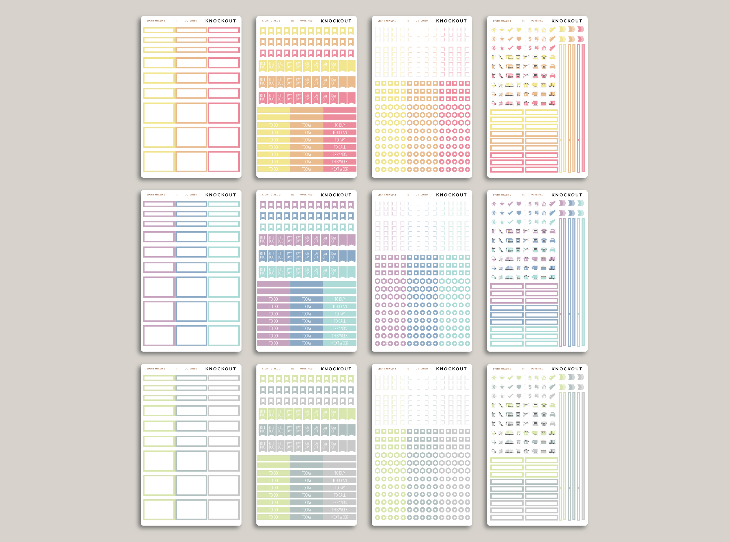 - LIGHT MIXED (Includes 12 sheets with 1 row in each of the Makse color + gray)