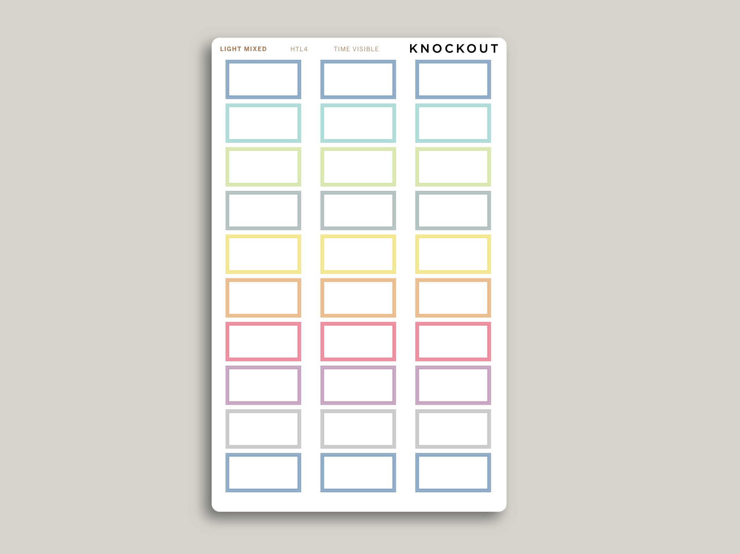 The possibilities are endless with our Two Hour Box Stickers for the Hobonichi Cousin. Use these stickers to bring attention to tasks, events, or appointments, layer them with other shape or icon stickers or stamp them with your favorite planner stamps. These stickers are sized to show the time strip on the left of the column.